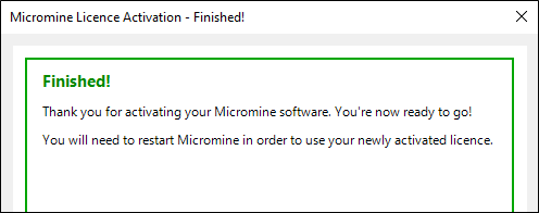 If you lose your code, please contact Micromine Licensing or Support to obtain a new code.