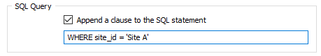 For example: I have a database that contains drilling data for multiple sites, however, I only want to import data related to Site A. To do this, I will append the clause WHERE site_id = 'Site A'. This will filter the database and only import the data in Site A. You can read more on our webhelp article: SQL Clauses