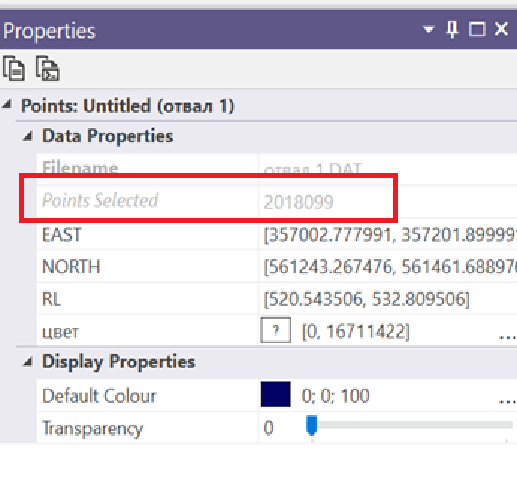 In the Properties window we will see the number of points, which has decreased by half