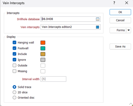 After making the necessary edits, save the changes and return to the Modeling form (if it’s still open) to run the tool again. You will see that the vein intercepts you modified are applied, and both the hanging wall and footwall contacts follow the rules you set.