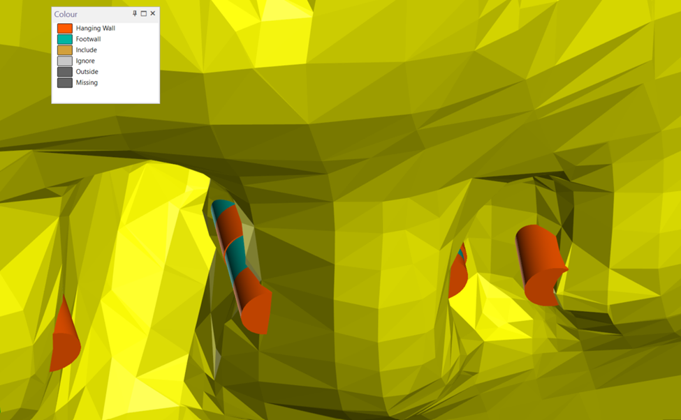Unlike other editing methods, such as guiding your solid with strings, the Intercept File projects the hanging wall (HW) and footwall (FW) contacts and orientations, giving you flexible options to manipulate and edit the model. You can select multiple intercepts at once or work with individual ones to swap between HW and FW or ignore specific intercepts if necessary.