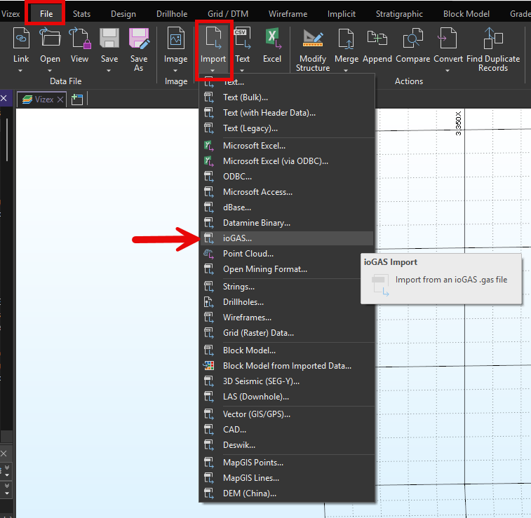 The users can import ioGAS data directly into Micromine Origin for visualisation and further analysis.