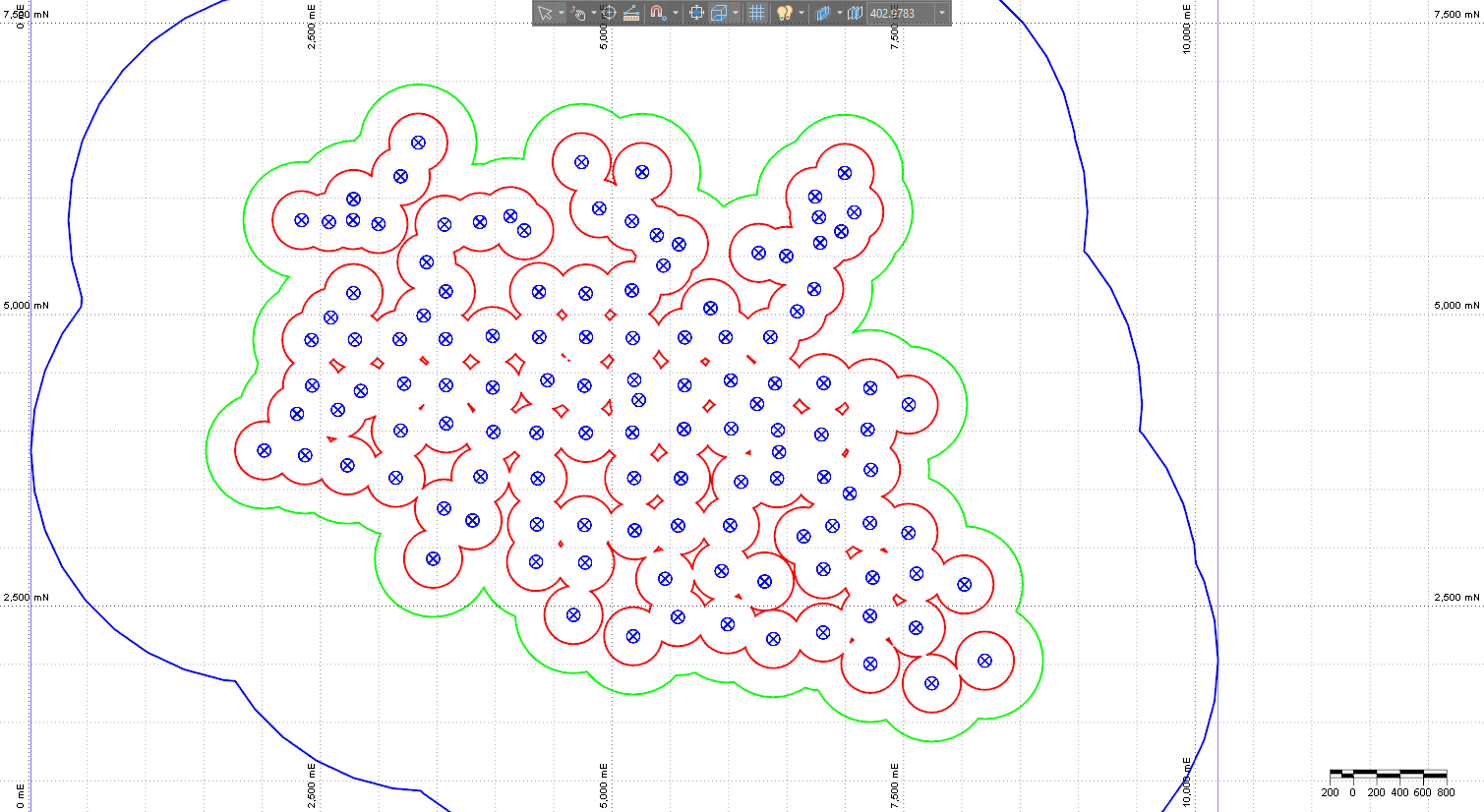 Figure 1: Zone of influence analysis based on the trace points at a specific RL