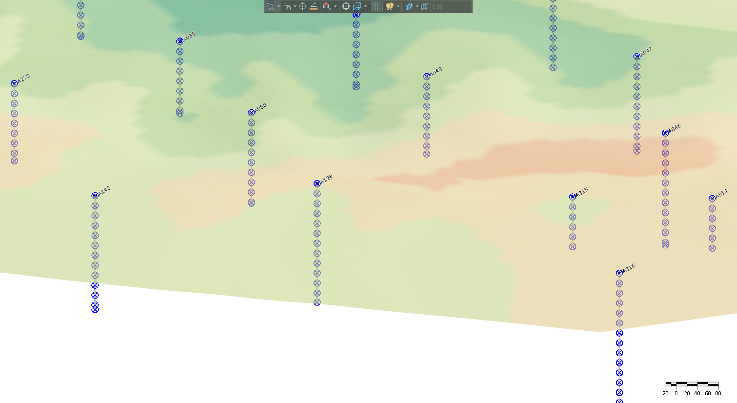 Figure 2: XYZ points were generated along the drillhole traces at 20m intervals till the end of hole