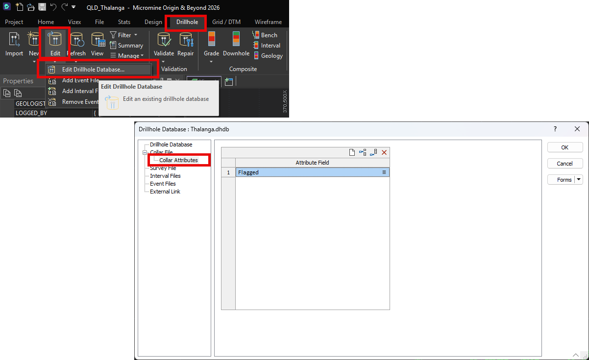 Figure 2: Adding a new collar attribute to the existing Drillhole Database