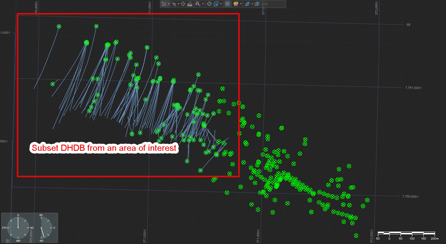 Figure 4: Subset drillhole database extracted from an Area of Interest.