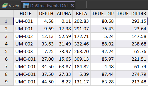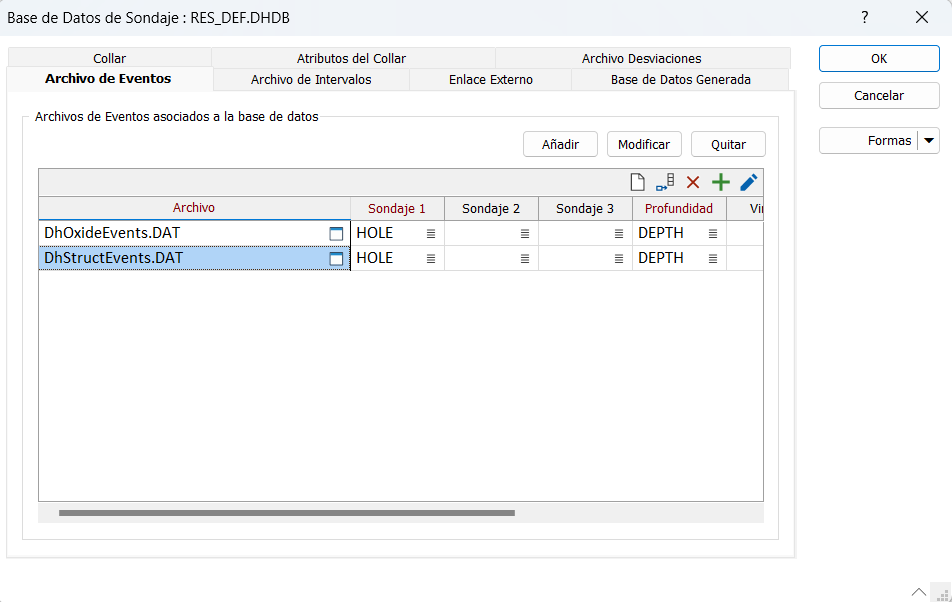 1. Añada el archivo que contiene sus datos estructurales como un archivo de eventos en su base de datos de sondajes.