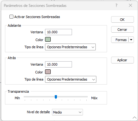 El color, tipo de línea y transparencia de los objetos sombreados