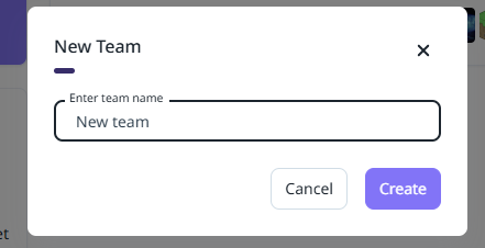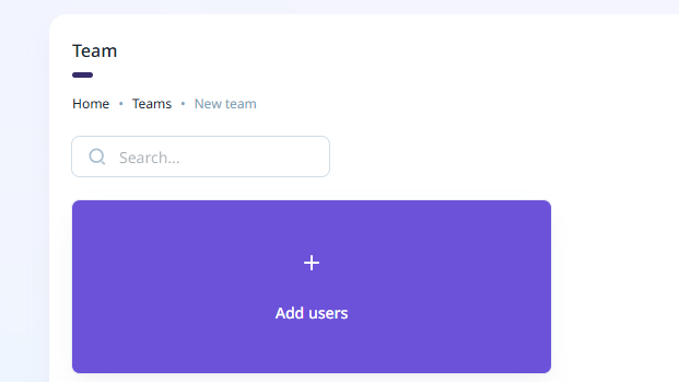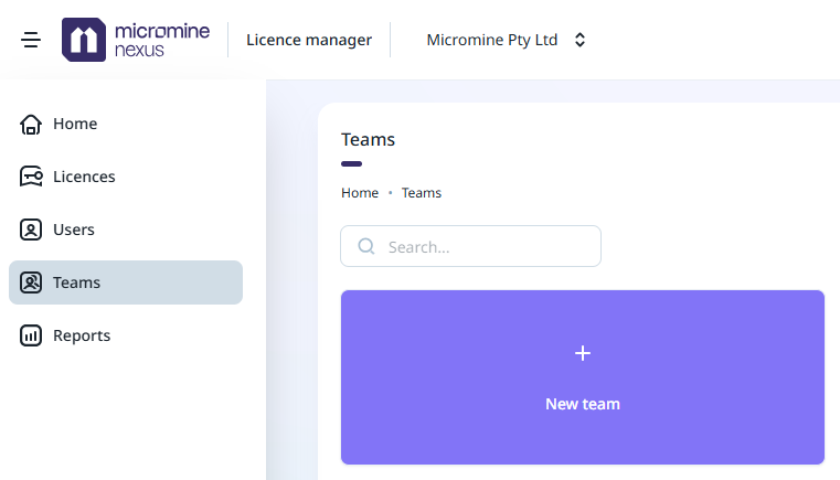 2. Para gestionar los permisos de la licencia entre múltiples usuarios de manera más efectiva, agrúpelos en un Equipo. Vaya a la página de Equipos y haga clic en Nuevo equipo allí (opcional).