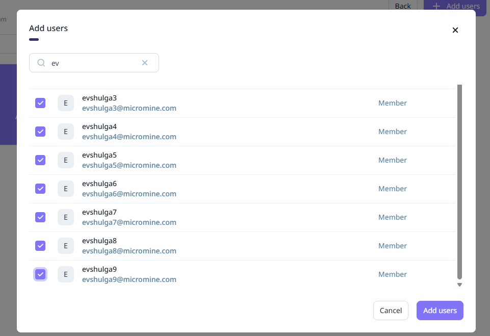 Utilice las casillas de verificación para seleccionar usuarios de la lista y luego haga clic en Agregar usuarios.
